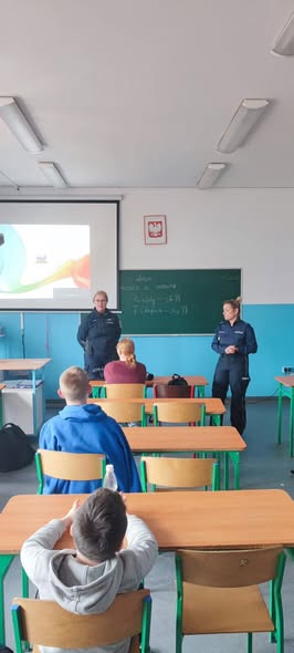 W naszej szkole odbyło się spotkanie przedstawicieli Policji z uczniami. Tematem przewodnim był hejt w sieci. Podczas rozmowy funkcjonariusze wyjaśnili, jakie konsekwencje prawne i społeczne może nieść za sobą niewłaściwe zachowania w Internecie. Uczniowie zostali również poinformowani o zagrożeniach związanych z nowym wyzwaniem, które pojawiło się w sieci. Dziękujemy za cenną lekcję oraz poświęcony czas. Z niecierpliwością czekamy na kolejne spotkania i dalszą współpracę.